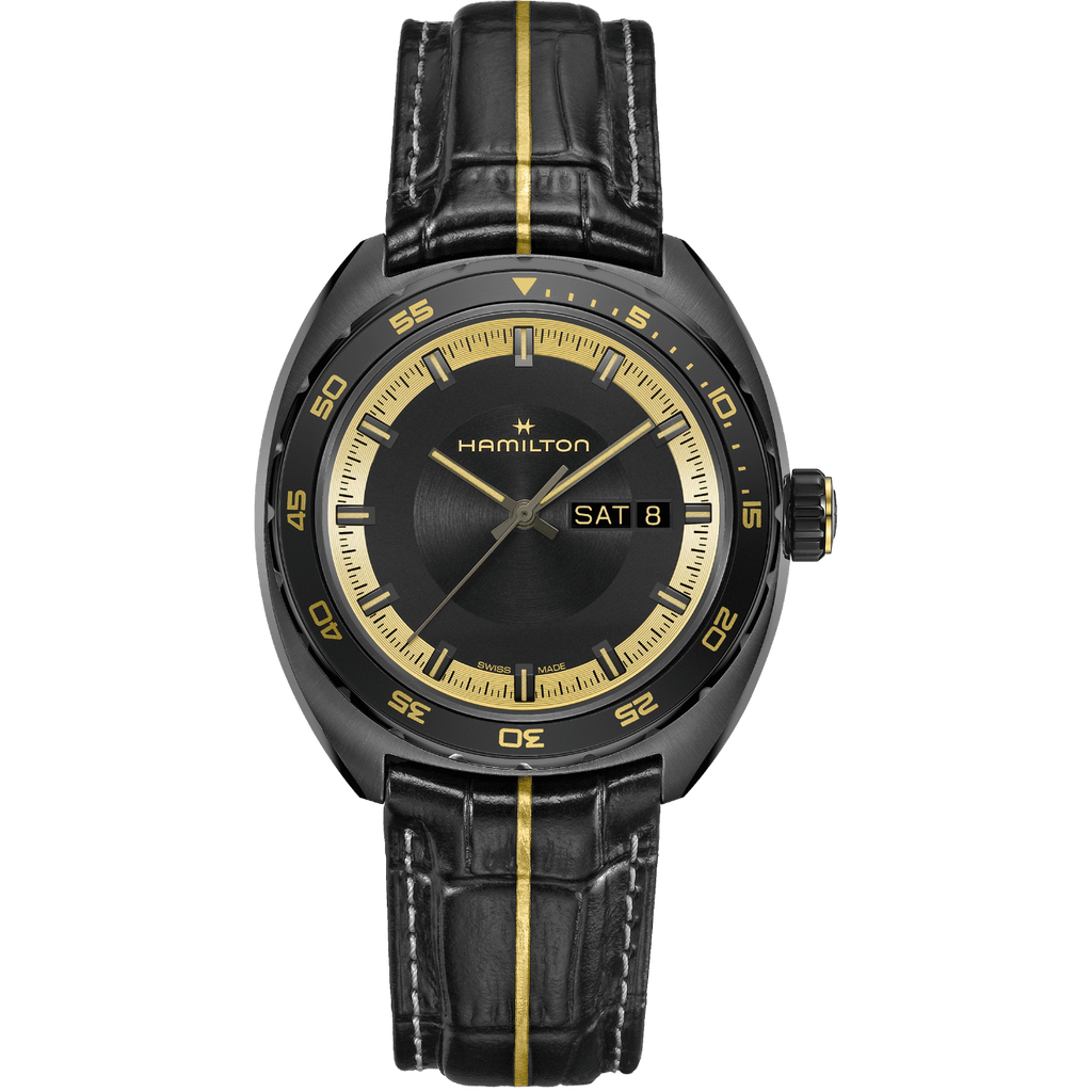 Portée par Grace Ashcroft dans le jeu, la Pan Europ Resident Evil apporte un contraste subtil dans un univers dominé par la tension et l’urgence. Son esthétique repose sur un jeu de couleurs or et noir, à la fois élégant et affirmé. Une ligne dorée traverse le centre du bracelet en cuir noir à motif crocodile, créant un lien visuel fort avec les éléments dorés du cadran et de la lunette.