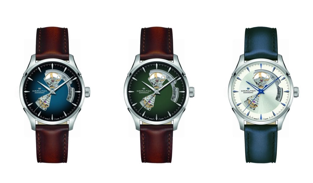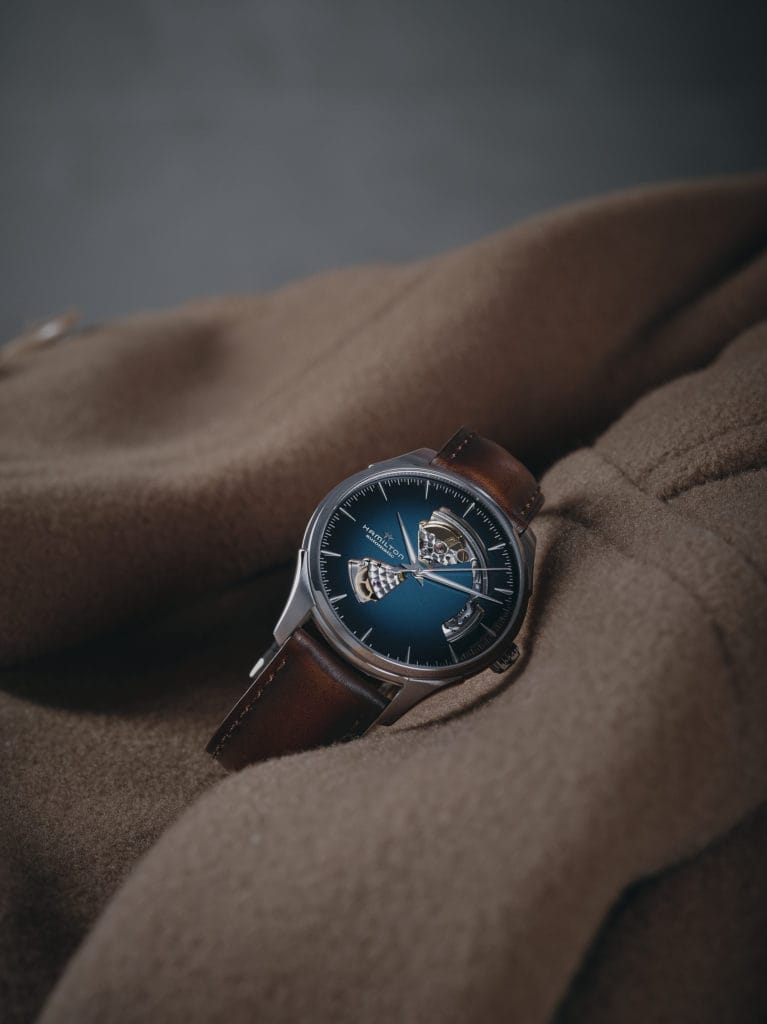 Ouvertures audacieuses, cadrans dégradés et bracelet en cuir effet patiné : la Jazzmaster Open Heart Automatic de Hamilton, montre classique habillée, se transforme en garde-temps moderne. Ces trois nouveaux modèles de 40 mm donnent à voir les merveilles de l’ingénierie de précision suisse dans un style unique conçu pour marquer les esprits.
