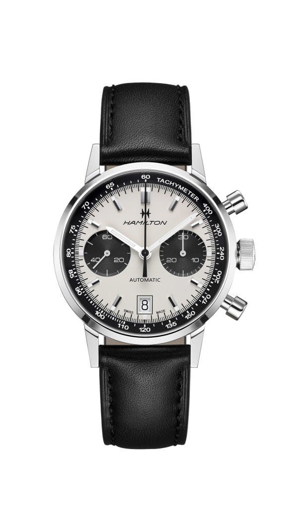 Atout principal de la montre, le cadran panda original, très populaire dans les années 60 et 70, fait son grand retour. Même le logo Hamilton et sa police sont identiques à la version de 1968. Le cadran blanc arborant des compteurs de chronographe noirs, petit bijou monochrome signé Hamilton, est un élément de design très apprécié, fidèle à l’esprit américain du Chronograph A original.