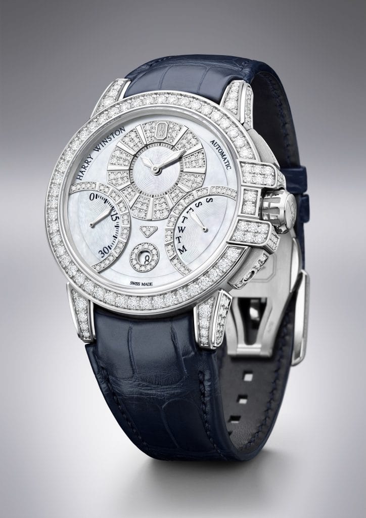 Harry Winston s’est distingué pour la première fois dans le monde de la Haute Horlogerie en 1989, lorsque la Maison a insufflé son amour pour les belles pierres et les créations de joaillerie sophistiquées à une industrie élevant les complications et la précision au rang d’art. Protégée par une boîte ronde en or, raffinée et résolument contemporaine, la collection Ocean est la vitrine des plus belles complications horlogères.
