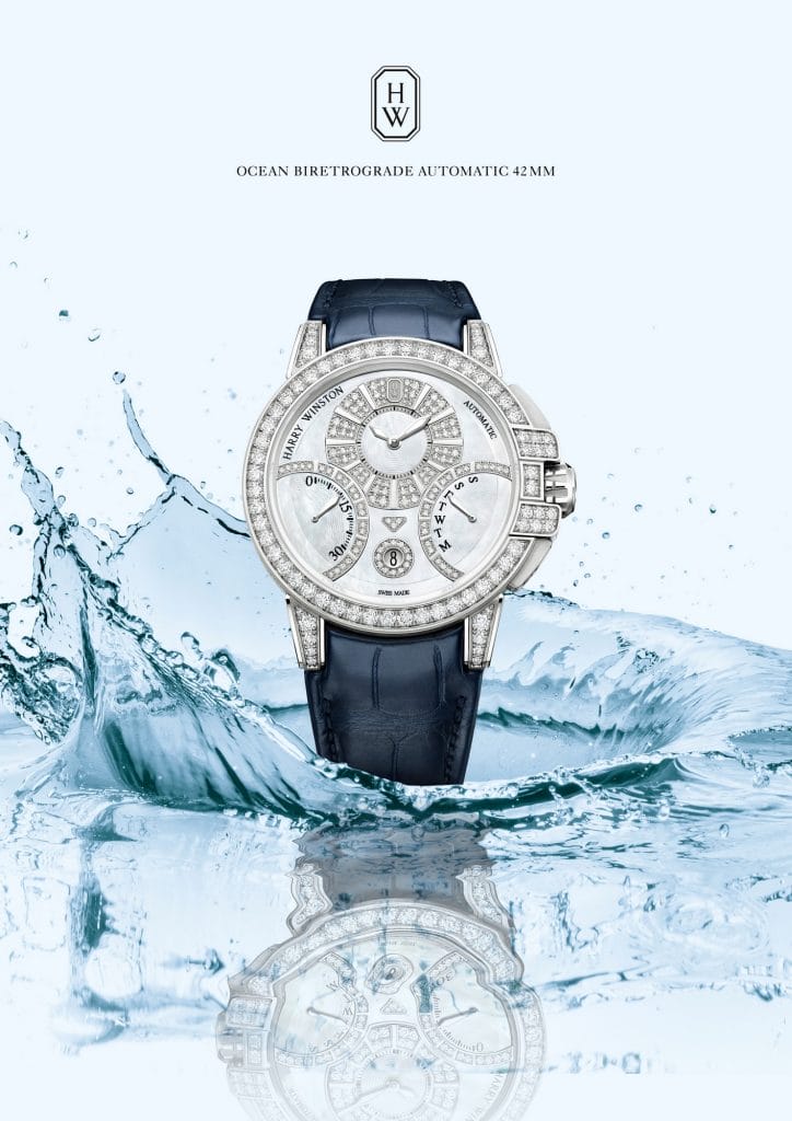 La nouvelle Ocean Biretrograde Automatic 42mm renferme deux des complications signature de la Maison Harry Winston : les heures et minutes excentrées et un double affichage rétrograde. Comme sur toutes les créations de la collection Ocean, deux arches inspirées par la façade du Salon Harry Winston de la 5e Avenue, à New York, étreignent la couronne. En hommage à la passion de M. Winston pour les diamants, un total de 367 diamants taille brillant enveloppe ce garde-temps de lumière et d’élégance.