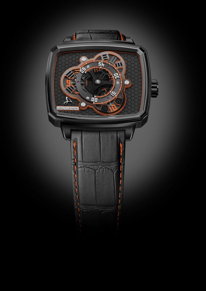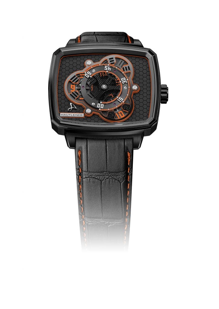Le modèle HL Vagabonde est disponible en deux déclinaisons. HL Vagabonde 01, une version plus classique, monochrome, mettant à l’honneur les tonalités de gris, noir et blanc ; et HL Vagabonde 02, une variante plus sportive, plus dynamique, en noir et orange. Soulignant le secteur de lecture des minutes, un liséré blanc ou orange court le long du disque. L’angle de 240° assure quant à lui une grande précision du point de vue technique. Animant la ronde des disques, le mouvement HTL 205-1 à remontage automatique bidirectionnel garantit une réserve de marche de 3 jours minimum. À la base du calibre HTL 205-1, il y a le mouvement manufacture de H. Moser & Cie., que HAUTLENCE a soumis à un développement modulaire pour aboutir à cette belle réalisation.