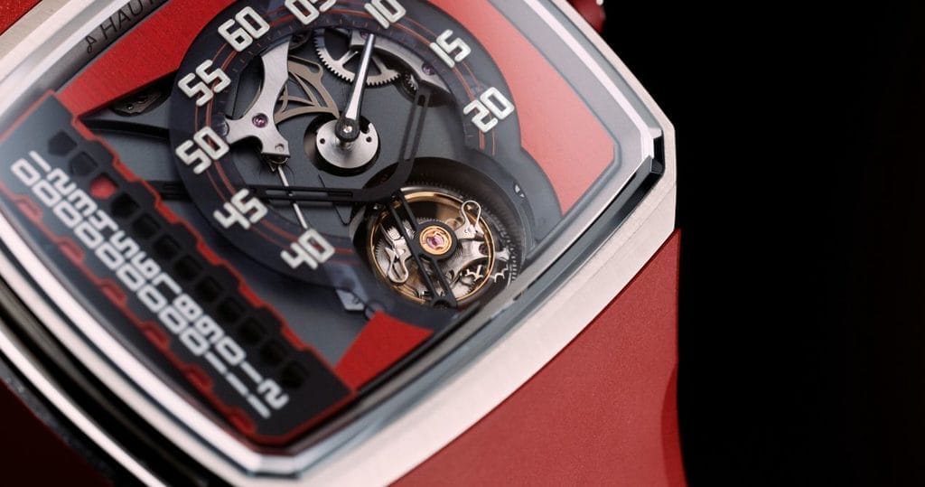 - Affichage rétrograde linéaire des heures, tourbillon volant 1 minute