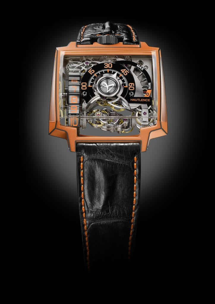 Avec la Vortex Gamma Magma, HAUTLENCE signe une montre de haute technologie, au design affirmé et percutant, avec un coeur mécanique de haute technologie.