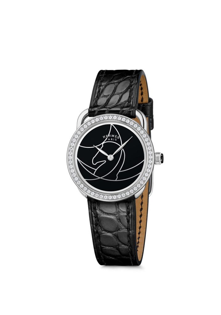 Aussi étincelantes que discrètes, les montres Arceau Cavales mettent en lumière les gestes experts des artisans horlogers de la maison et s’habillent des allures du temps Hermès.