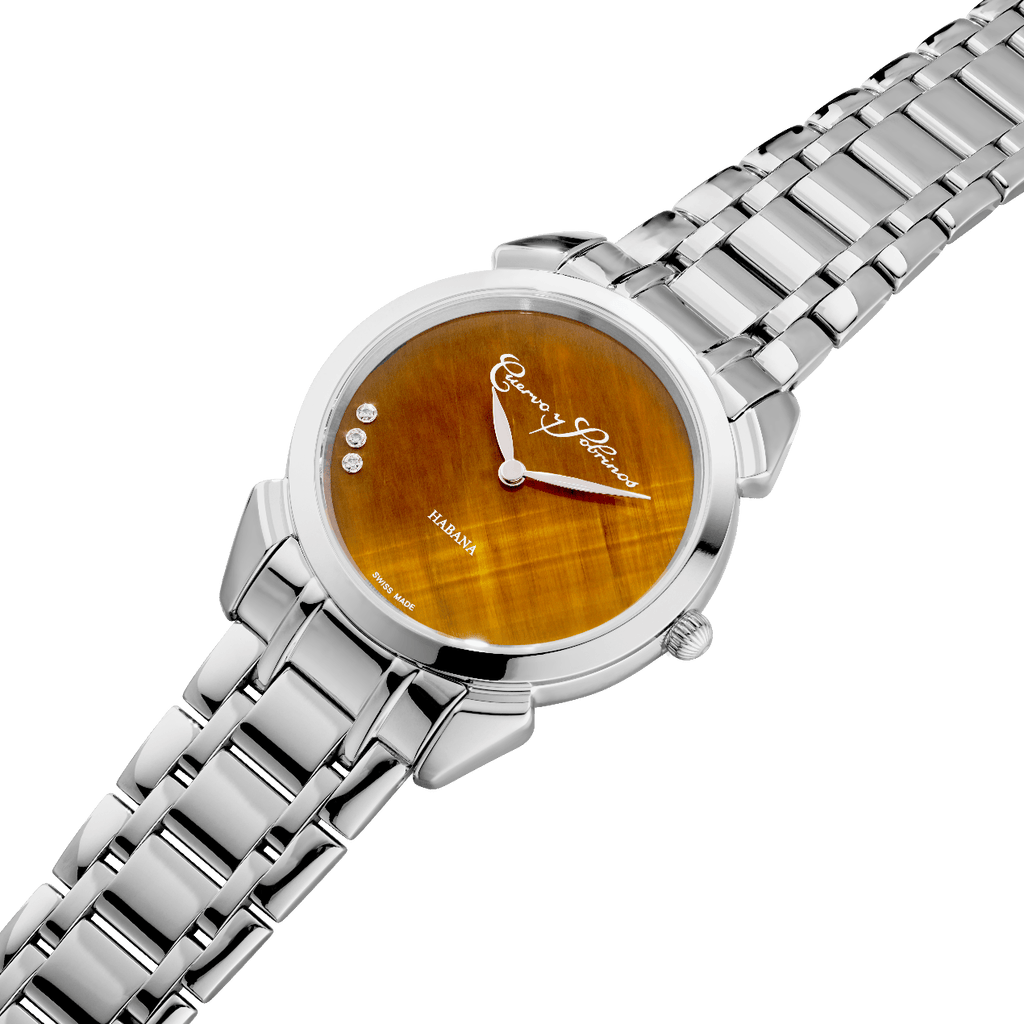 Chaque cadran est unique, façonné par la nature elle-même. Les variations de teintes et de textures font de chaque Historiador Primera Dama une pièce singulière, loin de toute standardisation. Trois diamants sertis à 8 heures viennent souligner cette élégance assumée, apportant une touche de lumière discrète mais précieuse, parfaitement intégrée à l’équilibre du cadran.