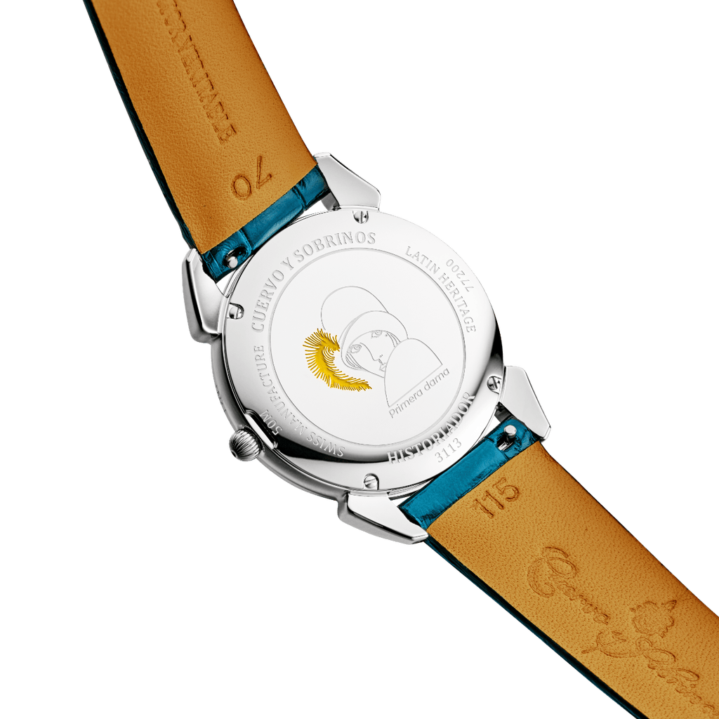 Chaque modèle est proposé avec deux bracelets, renforçant la polyvalence de la montre. Un bracelet en alligator de Louisiane brillant, assorti à la teinte du cadran, apporte une touche de sophistication classique, tandis que le bracelet en acier inoxydable offre une allure plus contemporaine, idéale pour une élégance de tous les instants. Cette dualité permet à la Historiador Primera Dama de passer avec aisance du jour à la nuit, du quotidien aux occasions plus formelles.