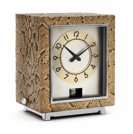 Parmi les lots proposés, les collectionneurs auront l’opportunité de découvrir la révolutionnaire pendule Atmos, une invention emblématique de l’horlogerie du XXe siècle. Conçue par Jean-Léon Reutter en 1928 et commercialisée par Jaeger-LeCoultre dans les années 1930, cette pendule témoigne d’une ingéniosité remarquable et d’un design emblématique de l’Art Déco. Un exemplaire rare des années 1940, estimé entre 2 000 et 3 000 €, sera présenté lors de la vente, avec son cuir de python qui évoque l’histoire particulière de sa création pendant la Seconde Guerre mondiale.