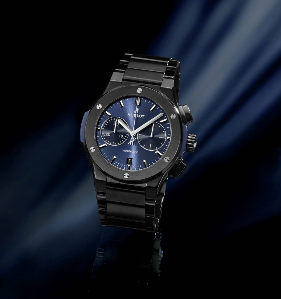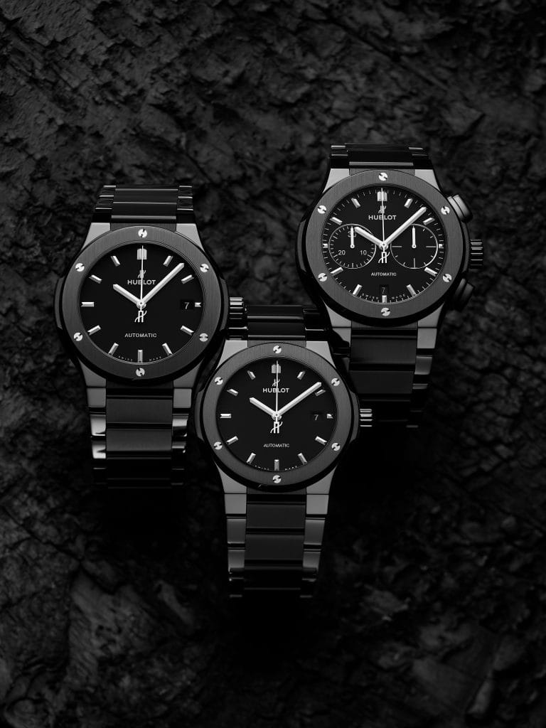 Must-have intemporel siglé Hublot, la Classic Fusion intègre un nouveau bracelet en céramique noire. En mode chrono ou trois-aguilles-date, sur cadran noir mat ou bleu satiné, cette icône unisexe « Art de la Fusion » affiche le style décomplexé du classique bien conçu.