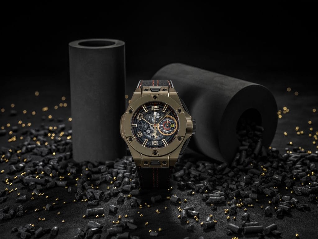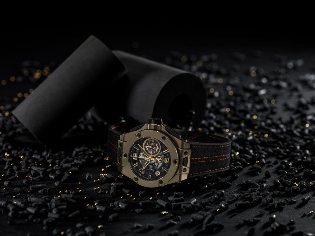 SOUS L’EFFET DE LA MATIERE QUI A SCELLE LE PARTENARIAT AVEC FERRARI, LA BIG BANG FERRARI MAGIC GOLD DEVIENT INALTERABLE, INRAYABLE