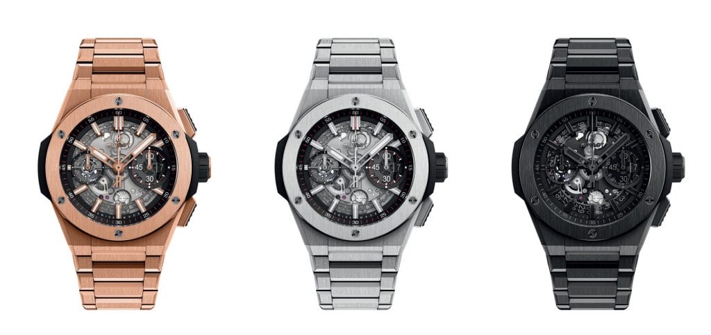 Éditée dans 3 matériaux indissociables de l’histoire d’Hublot, elle revêt la légèreté du titane, la durabilité et l’inrayabilité de la céramique (500 ex.) et l’unicité du King Gold – un or 18 carats exclusif à Hublot d’un rouge plus intense né d’un alliage d’or, de cuivre et de platine.