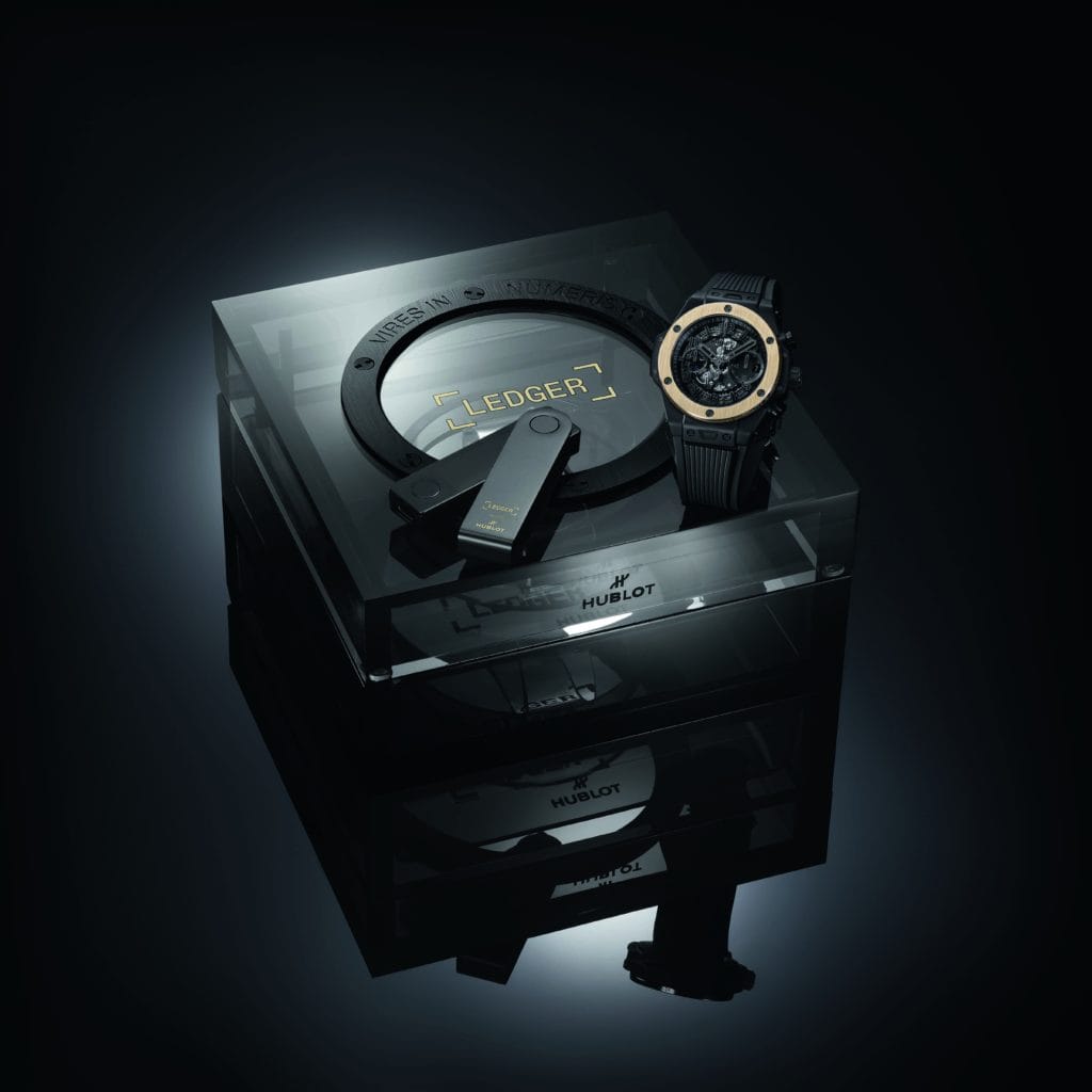 La montre est accompagnée de la clé cryptée en édition limitée Ledger & Hublot Nano X, qui sera uniquement disponible dans ce cadre. Le Nano X est le portefeuille d’actifs numériques signature de Ledger, un matériel leader sur le marché, activé par Bluetooth, permettant de crypter, sécuriser, gérer et développer en toute sécurité ses actifs cryptés. Le Nano X affiche une finition noir mat et est orné des logos de Ledger et de Hublot.
