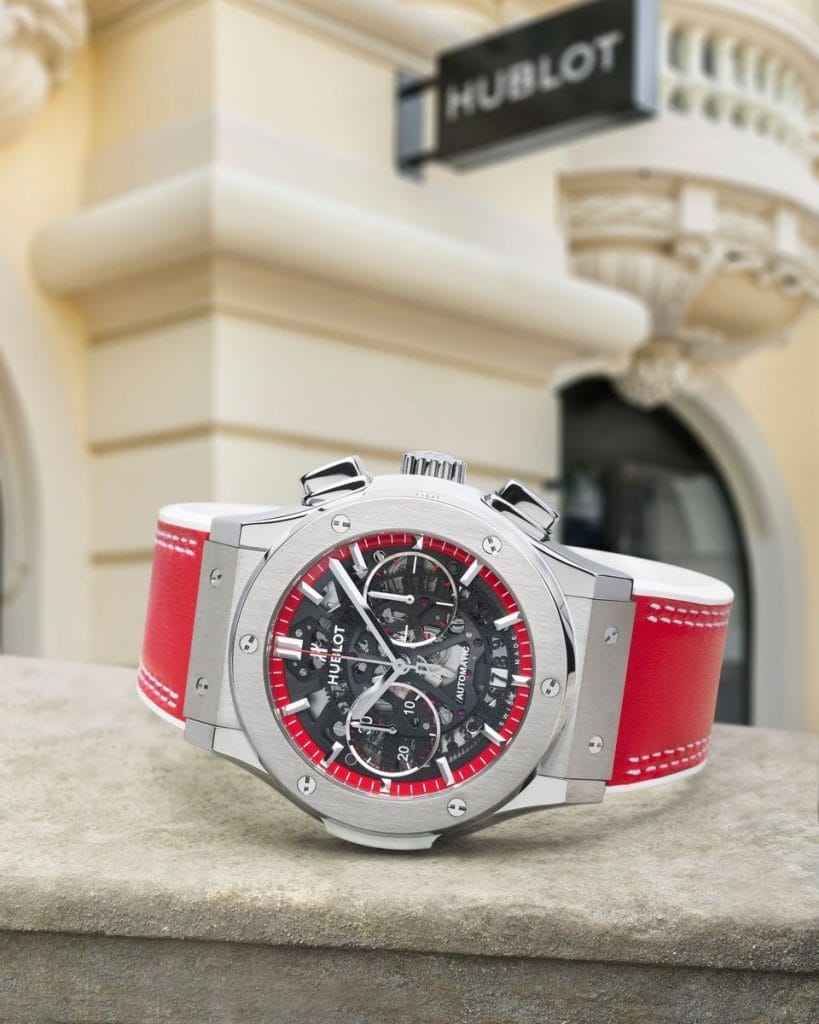 Hublot célèbre le 1er anniversaire de sa boutique monégasque et salue les couleurs de Monaco avec la Classic Fusion Aerofusion Chronograph Special Edition ‘Boutique Monaco’