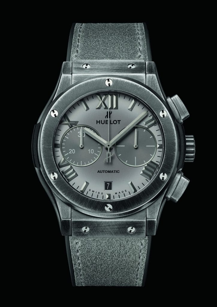 Titane noir brossé avec logo HUBLOT gravé