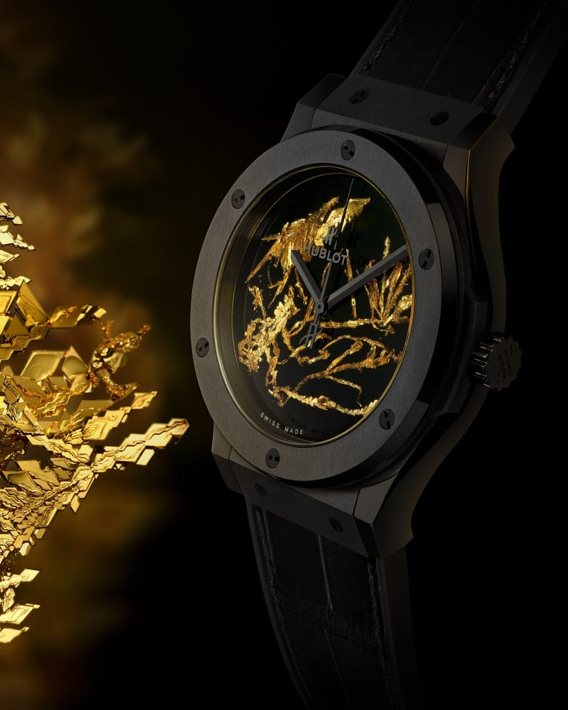 Une exclusivité absolue : Hublot présente la Classic Fusion Gold Crystal. Une montre dont le cadran se pare de la forme d’or la plus rare sur Terre : le cristal d’or.