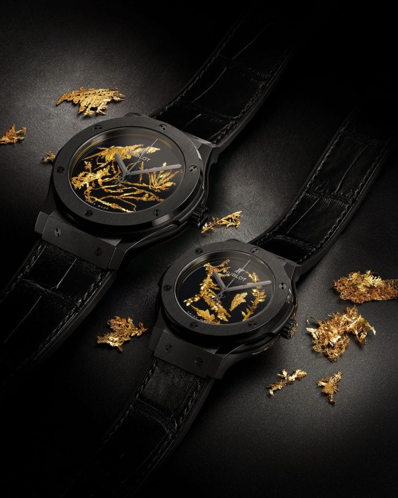 « Chacune de nos montres Classic Fusion Gold Crystal est une oeuvre unique, non reproductible. Une unicité de la matière et du design rendue possible grâce à notre maitrise du processus de production complexe. Nous sommes parvenus à reproduire l’or sous sa forme terrestre la plus rare : le cristal d’or. De la nuit des temps au cadran de nos montres en passant par notre belle nature suisse, l’or n’a pas fini de nous fasciner. Il est ici montré dans son expression la plus pure, la plus magique. » Ricardo Guadalupe CEO Hublot
