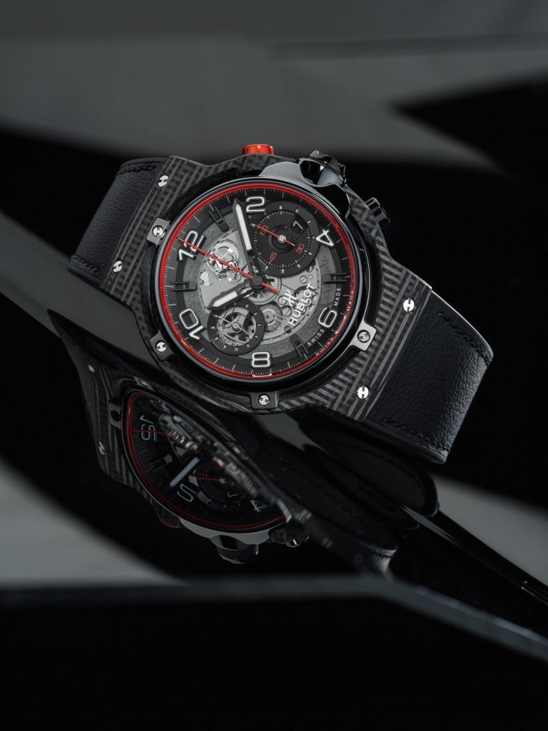Inédit dans le monde de la Haute Horlogerie, le Carbone 3D est un composite à matrice polymère (PMC) tissé de fibres en trois dimensions. Ce matériau high-tech, très prisé dans les sports automobiles, présente des qualités hors-norme de résistance et de légèreté et permet, dans le cas de la Classic Fusion Ferrari GT, de solidement cuirasser le mouvement de manufacture UNICO. Imaginée et dessinée en collaboration avec le « Centro Stilé Ferrari », la nouvelle Classic Fusion Ferrari GT est conforme à l’image des créations qui sortent des ateliers de Maranello. Son design est très contemporain ; Hublot ayant travaillé sur le moteur et Ferrari sur la carrosserie. Pour cela, les designers « Centro Stilé Ferrari » ont mis en œuvre leurs compétences, créant des passerelles entre le design automobile et la motorisation horlogère ; prouvant ainsi qu’ils aimaient travailler et se surpassser sur d’autres projets que ceux liés aux voitures.