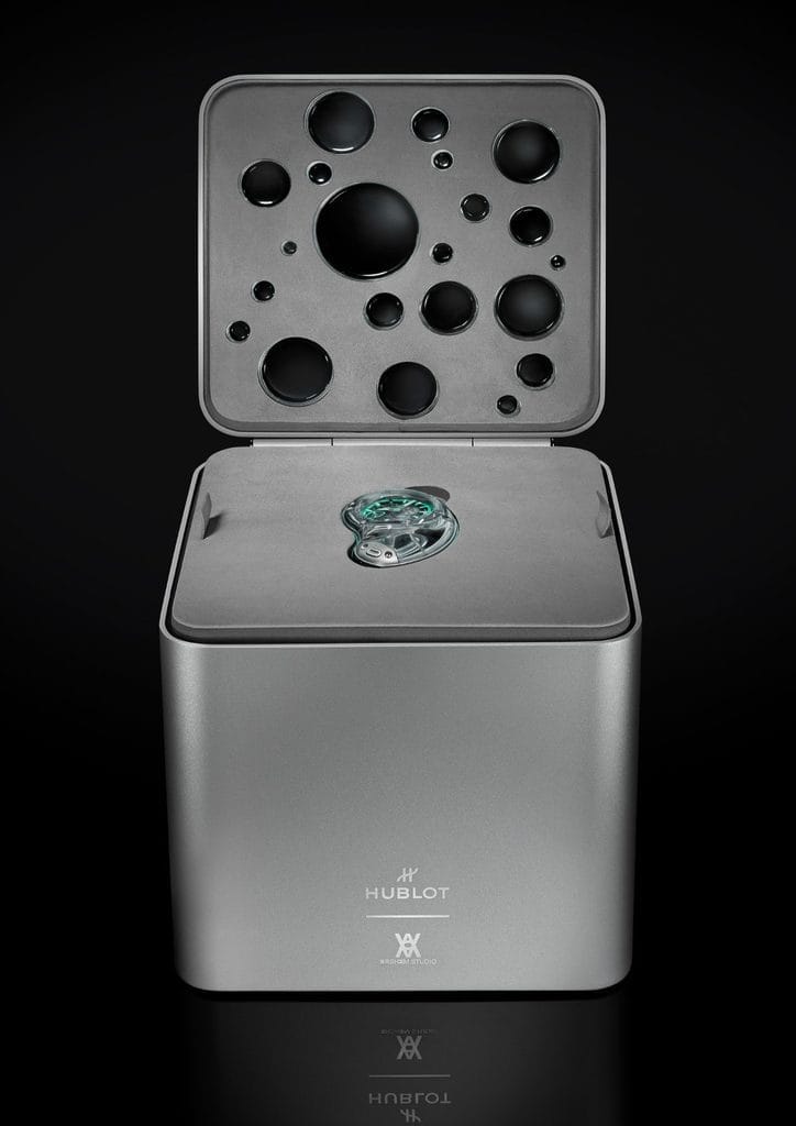 Réalisée à partir d’un mélange harmonieux de titane, de caoutchouc et de verre saphir, l’Arsham Droplet témoigne de l’amour du détail et de la quête de l’innovation qui animent Hublot.