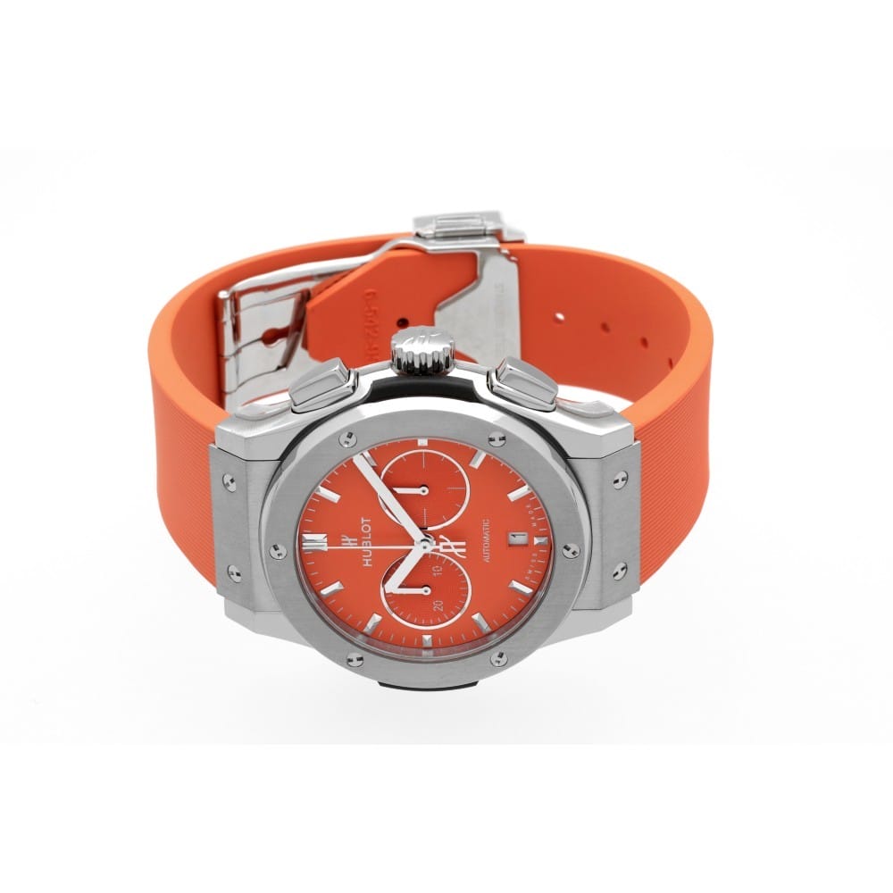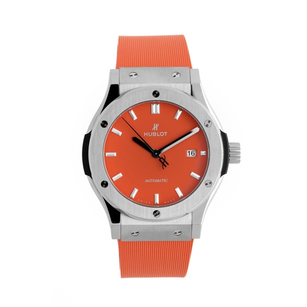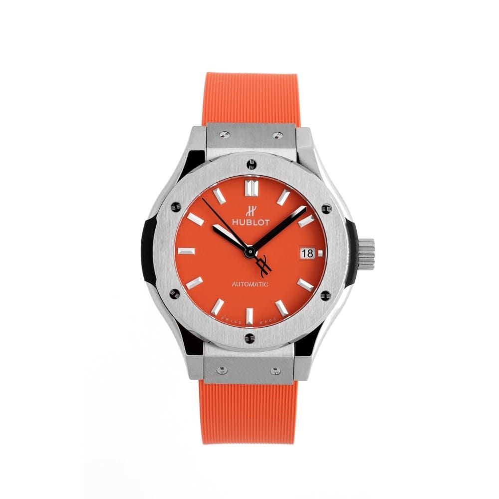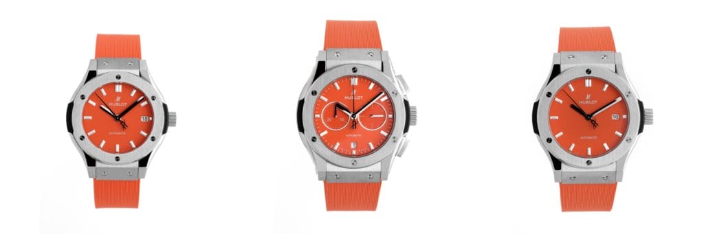 « Le orange est devenu au fil des années la couleur culte de MAIER. Elle s’est imposée comme une évidence à la rencontre du modèle emblématique Hublot Classic Fusion, en parfaite adéquation avec son ADN sportif et vitaminé » Jean Louis Maier