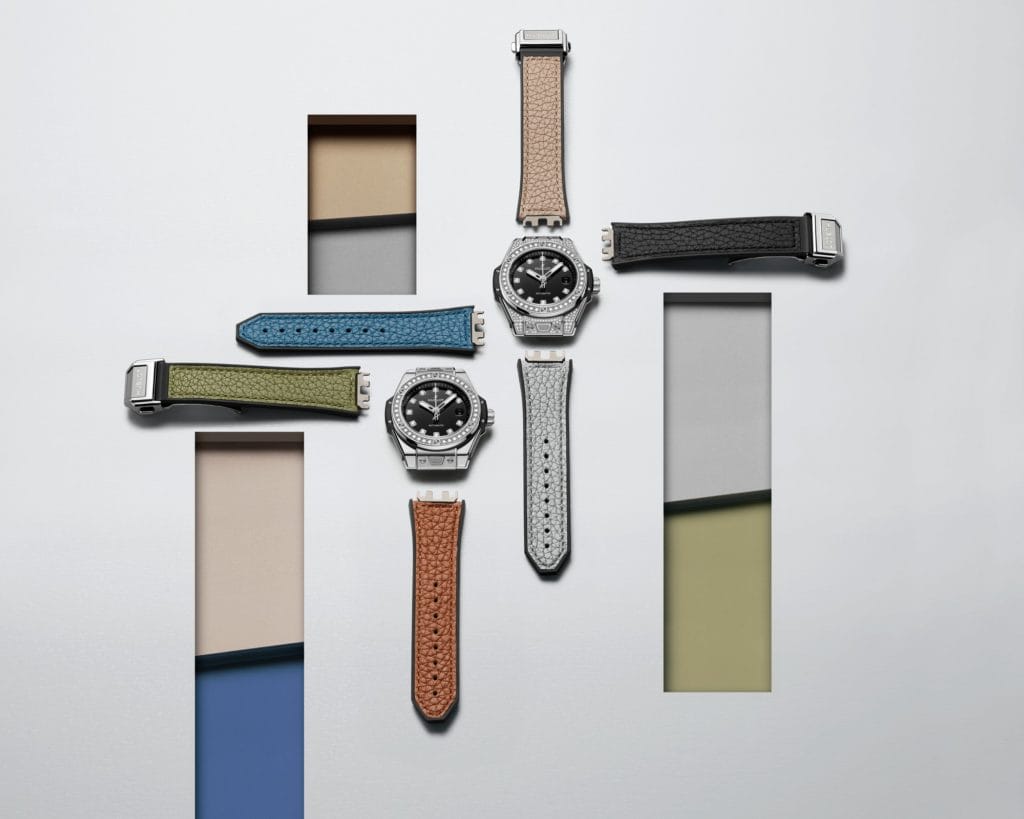 Elles brouillent les codes et changent d’allure en un clic selon l’humeur, grâce au système breveté « One click ». Douze bracelets en cuir de veau Soft Touch nuancent leurs expressions sur le poignet, douze teintes, des plus intemporelles aux plus pétillantes ou denses, obtenues par un tannage végétal réalisé en France. Une façon de concilier les caprices du temps et l’éternité d’un style. Ces bracelets sont également disponibles pour les modèles Big Bang One click 39mm et Big Bang Unico 42mm.