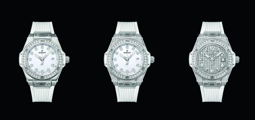 « Bousculer les repères, accorder avec justesse des matériaux qui traditionnellement ne sont pas associés ou n’ont pas d’affinité naturelle, caractérisent Hublot. Depuis de nombreuses années, garde-temps ne rime plus avec austérité. La précision est le dénominateur commun de la Haute horlogerie et de la joaillerie. La Big Bang One Click allie le meilleur des deux, en offrant la liberté d’harmoniser sa montre joaillière avec son look.» Ricardo Guadalupe HUBLOT CEO