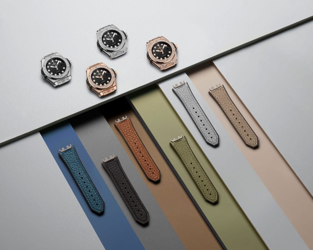 Elles brouillent les codes et changent d’allure en un clic selon l’humeur, grâce au système breveté « One click ». Douze bracelets en cuir de veau Soft Touch nuancent leurs expressions sur le poignet, douze teintes, des plus intemporelles aux plus pétillantes ou denses, obtenues par un tannage végétal réalisé en France. Une façon de concilier les caprices du temps et l’éternité d’un style. Ces bracelets sont également disponibles pour les modèles Big Bang One click 39mm et Big Bang Unico 42mm.