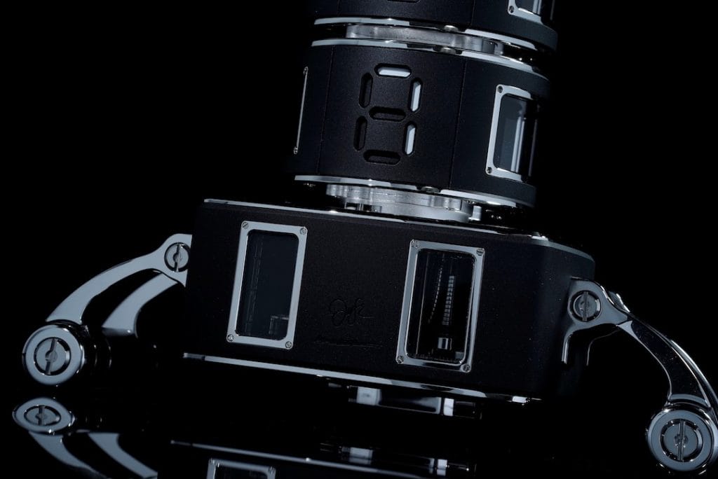Jorg Hysek fait son retour à Baselworld pour présenter un concept inédit de sculptures mécaniques fruit d’un travail assidu et de rencontres coup de cœur. Jorg Hysek, dont le talent de designer visionnaire a rayonné pendant des décennies dans l’horlogerie suisse, revient à ses premières amours – le temps et son affichage – avec une nouvelle intention artistique. Première de sa série, « La Colonne du Temps » est une sculpture mécanique à remontage manuel.