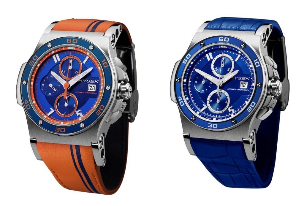 Côté cadran, on retrouve les attributs caractéristiques de la marque : la signature Hysek à 3h, les index 1, 5, 7 et 11 seuls présents en chiffres arabes, une lecture optimisée grâce à des compteurs sur différents niveaux de profondeur, de larges aiguilles empreintes de Super-LumiNova. Les aiguilles de seconde et de chronographe sont squelettées – un art pour lequel Hysek est aujourd’hui reconnu par les collectionneurs de Haute Horlogerie.