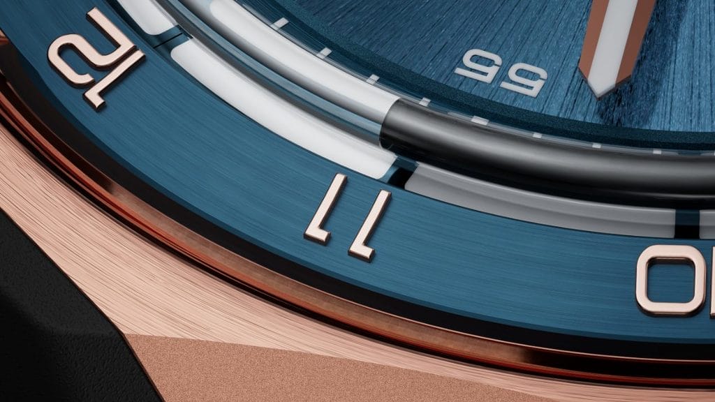 Pour la toute première fois dans son histoire, la marque dévoile un cadran entièrement fermé, conçu pour atteindre une harmonie absolue. Cette création se distingue par un travail méticuleux et ultra contemporain offrant des finitions satinées circulaires le long du parcours des minutes et sur le rehaut des heures qui sublime la palette de couleurs sophistiquées – saumon, argenté, gris anthracite et bleu nuit – assortie à des fluides de teinte bleue ou noire, ajoutant ainsi une distinctive élégance.