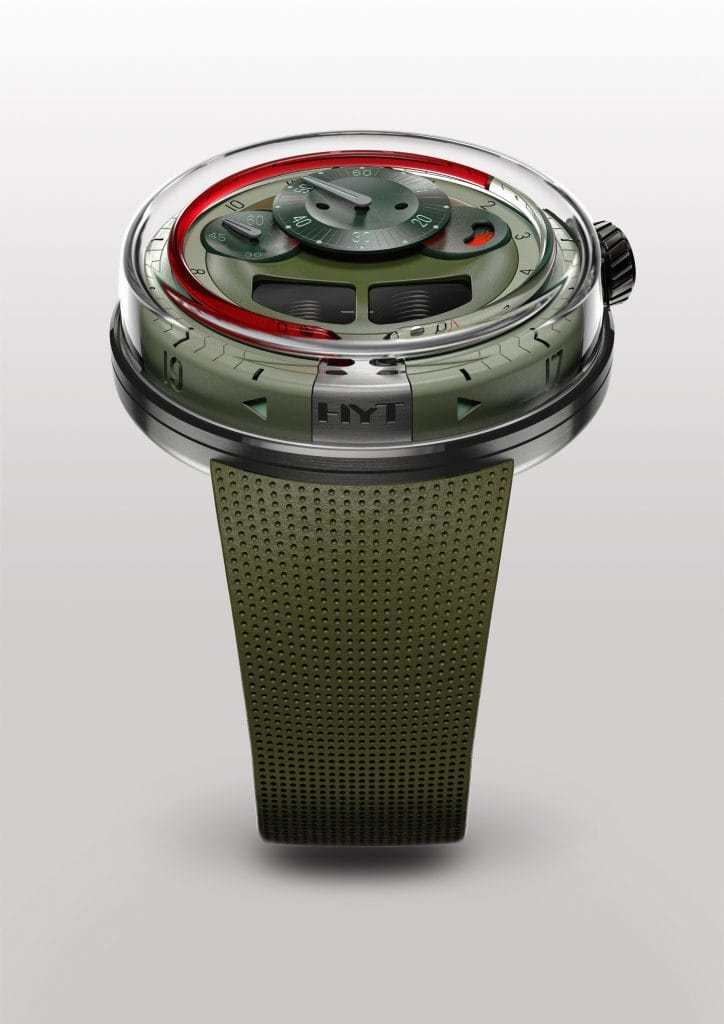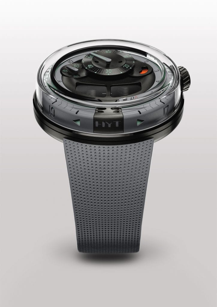 HYT est née d’une simple question : le temps s’écoule et seul son contenu lui permet de gagner en sens ; de ce fait, pourquoi limiter sa mesure à marquer le présent dans une belle cage dorée, au moyen de fines aiguilles ou de chiffres numériques fugaces ? Une équipe pluridisciplinaire, déterminée à porter et à propager ce souffle de rébellion, se constitue pour concevoir des montres qui relient de manière visible le passé, le présent et le futur. HYT propose ainsi un garde-temps qui défie les lois de la gravité et indique le passage du temps via des éléments liquides. Inspirée de la philosophie, cette technologie de pointe reflète la fluidité intrinsèque du temps.