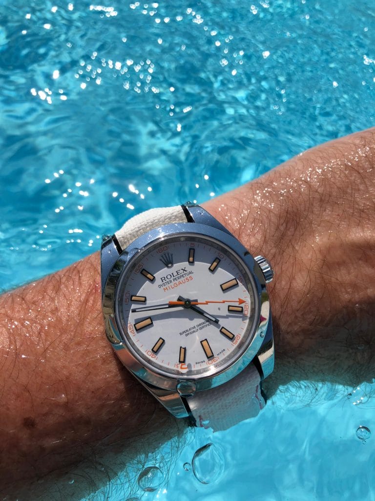 Exemple de bracelet monté sur une Rolex Milgauss