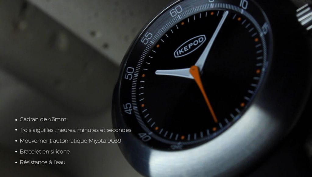 Une boîte en acier 316L, un cadran de 46mm (qui en parait 43mm au poignet), trois aiguilles pour les heures, les minutes et les secondes, un mouvement automatique Miyota 9039 et un bracelet en silicone en hommage à la première Ikepod: la Megapod a tout pour séduire les fans de la marque. Enfin, sa réserve de marche de 42h et sa résistance à l’eau (5ATM) seront sans aucun doute suffisants pour satisfaire la majorité des utilisateurs.