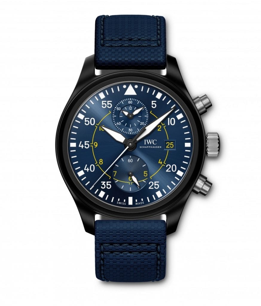 Titulaire depuis cette année d’une licence officielle des « Blue Angels® », la patrouille acrobatique de l’U.S. Navy, la manufacture horlogère suisse de luxe IWC Schaffhausen dévoile la Montre d’Aviateur Chronographe Édition « Blue Angels® » dotée d’un boîtier en céramique noire mat et d’un cadran bleu. Le design, surmonté d’un réhaut extérieur affichant uniquement les minutes, est inspiré des anciennes montres militaires d’observation.