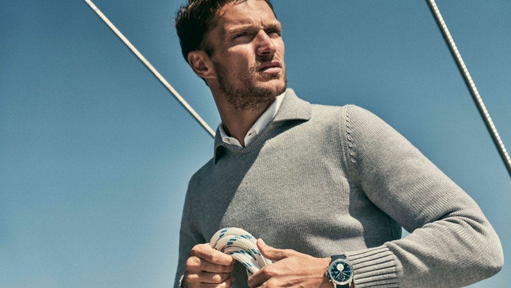 IWC Schaffhausen et Orlebar Brown ont choisi le mois idéal – celui de juillet – pour annoncer leur nouveau partenariat. Et pour marquer le début de cette collaboration, la manufacture horlogère suisse de luxe a dévoilé la Portugieser Yacht Club Chronographe Édition « Orlebar Brown » en même temps que la nouvelle collection de la marque de prêt-à-porter qui se compose de neuf pièces estivales. Doté d’un boîtier en acier inoxydable aux proportions raffinées, d’un cadran bleu marine et d’une boucle déployante co-marquée à fixation latérale, le chronographe marin étanche jusqu’à 6 bars constitue le compagnon idéal pour la pratique de la voile comme le farniente sur la plage.