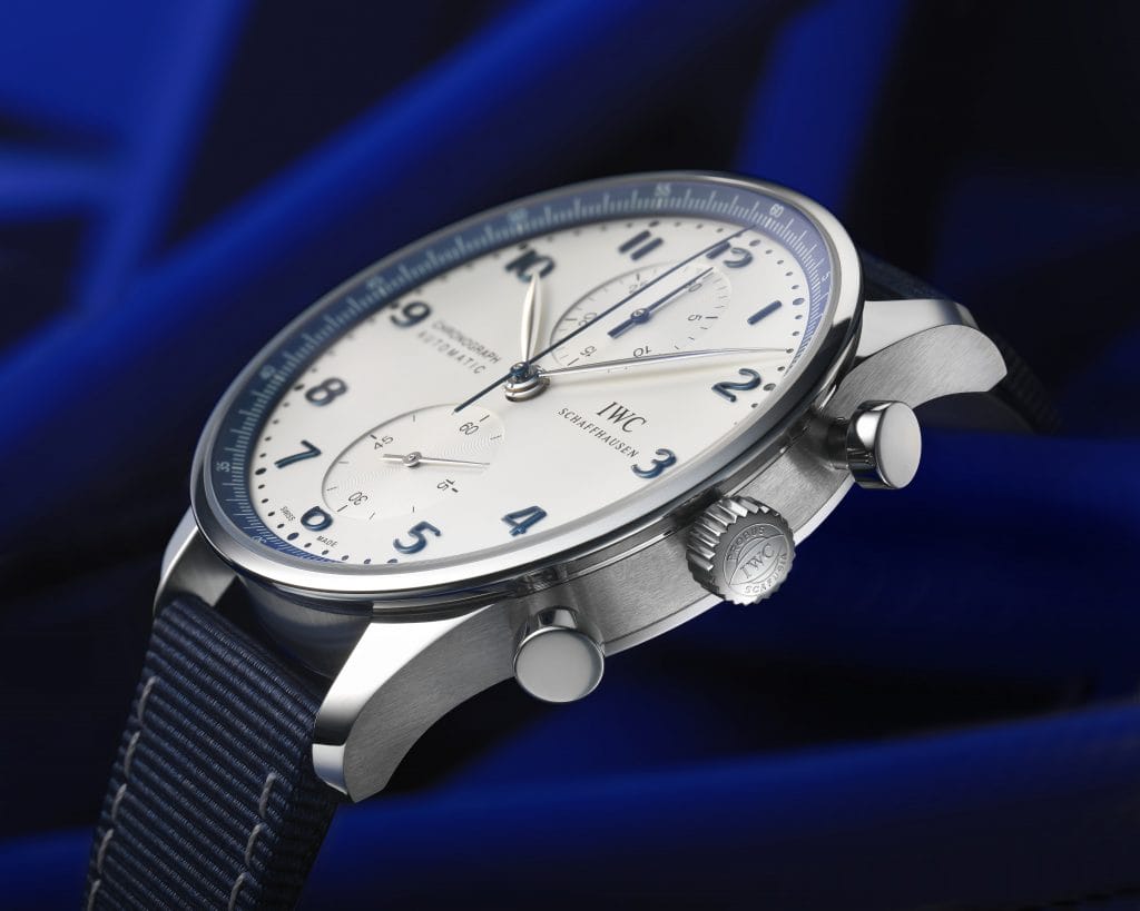 Une icône de style se revêt d’un nouveau look et fait l’unanimité : la Portugieser Chronograph d’IWC Schaffhausen revient à ses racines maritimes pour BUCHERER BLUE. Dans une nouvelle édition limitée à 365 exemplaires, elle rend en effet hommage, en bleu et blanc, à la tradition horlogère suisse et à son attachement à la mer.