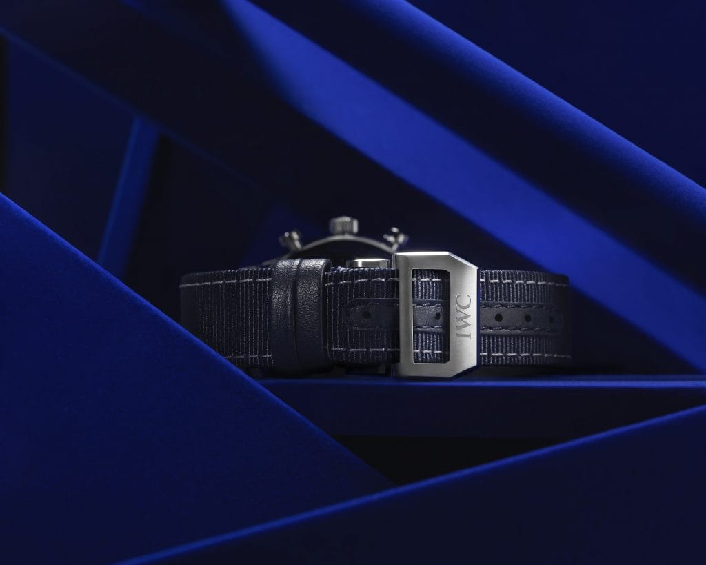 Depuis son lancement, cette montre se reconnaît à ses lignes minimalistes, à la sobriété de ses chiffres arabes et à ses fines aiguilles feuille. Cette série fascinante d’une extrême précision, déclinée dans un design emblématique, accueille maintenant la Portugieser Chronograph Bucherer BLUE d’IWC Schaffhausen. Pour se fondre à merveille dans l’esprit de Bucherer BLUE, l’échelle de précision apparaît tout en bleu autour du cadran blanc. La couleur bleue se retrouve aussi dans les chiffres, la minuterie et le bracelet, ce qui donne à l’ensemble une expression sportive et maritime. Le bracelet bleu en tissu, créé lui aussi en exclusivité pour le modèle Portugieser Chronograph Bucherer BLUE d’IWC, apporte également sa contribution à la sensation estivale dégagée par la montre. De par les dimensions moyennes de son boîtier (40,9 millimètres), ce nouveau chronographe est également du plus bel effet sur des poignets fins.
