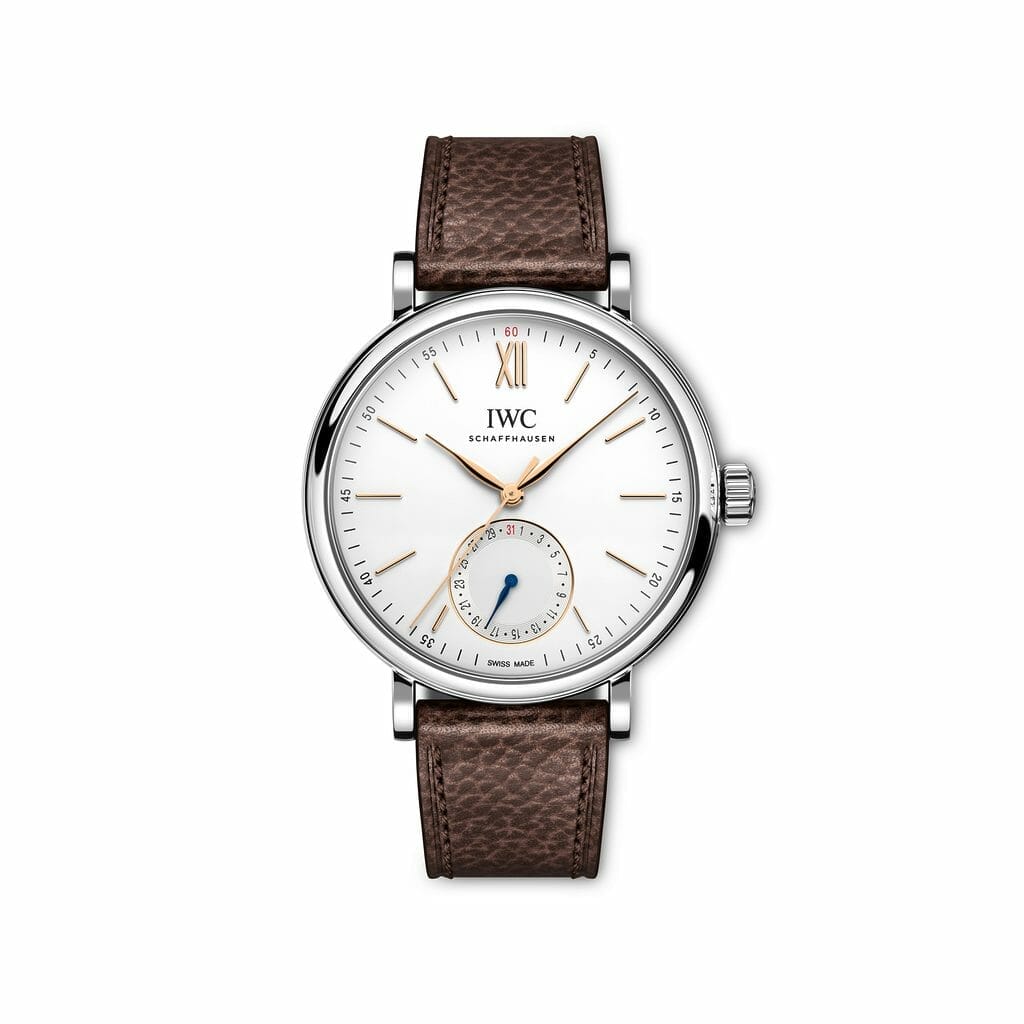 IWC Schaffhausen présente la Portofino Calendrier Complet. Ce modèle, proposé en or rouge 750/1000 ou en acier inoxydable, est le premier à être équipé du nouveau module de calendrier complet développé par IWC. Homologue du calendrier perpétuel et du calendrier annuel, le calendrier complet souligne l’expertise unique de la manufacture horlogère suisse de luxe, capable de concevoir des complications calendaires à la fois robustes et fonctionnelles. Le calendrier complet affiche la date, le jour de la semaine, le mois et le cycle lunaire dans deux guichets ; il ne requiert qu’une correction manuelle à la fin des mois de moins de 31 jours. IWC dévoile par ailleurs la Portofino Automatic Pointer Date, le premier modèle Portofino avec une date sautante dans un guichet à 6 heures.