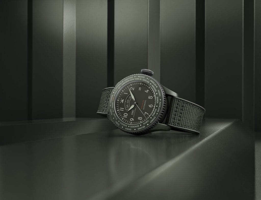 En offrant deux nouveaux modèles à sa collection « Les couleurs de TOP GUN », IWC Schaffhausen souligne son expertise approfondie dans la production de montres en céramique colorée se distinguant par son design monochromatique. La Montre d’Aviateur Timezoner TOP GUN Woodland est le premier modèle Timezoner® en céramique colorée. Ce garde-temps possède un boîtier en céramique vert foncé combiné à un cercle d’emboîtage et une couronne en Ceratanium®. La fonction brevetée Timezoner® permet à son propriétaire de changer en un clin d’œil de fuseau horaire, à l’aide d’une simple pression et rotation de la lunette tournante. La Montre d’Aviateur Chronographe 41 TOP GUN Mojave Desert est la première Montre d’Aviateur Chronographe IWC de 41 millimètres de diamètre dotée d’un boîtier en céramique couleur sable.