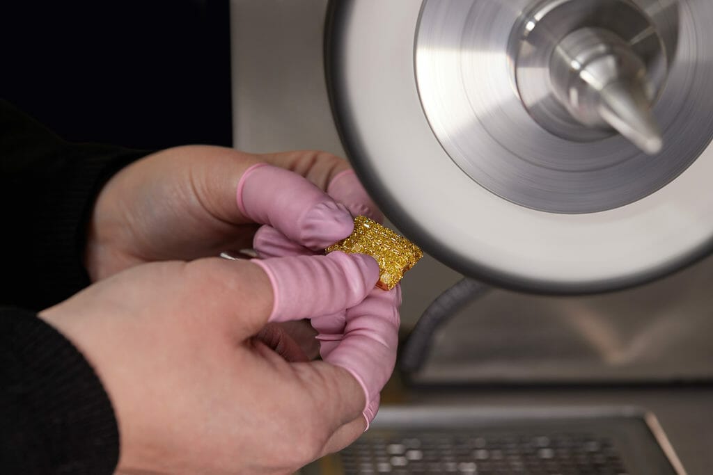 Les diamants jaunes n’ont rien à voir avec les diamants blancs. Présents dans une proportion de 10’000 contre 1, ils sont infiniment plus rares et plus chers. Notamment au cours des douze derniers mois. Et particulièrement avec la taille requise pour la Billionaire Timeless Treasure. Pour atteindre le total de 216,89 carats, Jacob & Co. a commencé par 880 carats de diamants bruts. Pas une seule pierre n’a été rejetée en raison de son prix. Elle ne le fut que si sa couleur et sa pureté étaient insuffisantes pour être retenues.