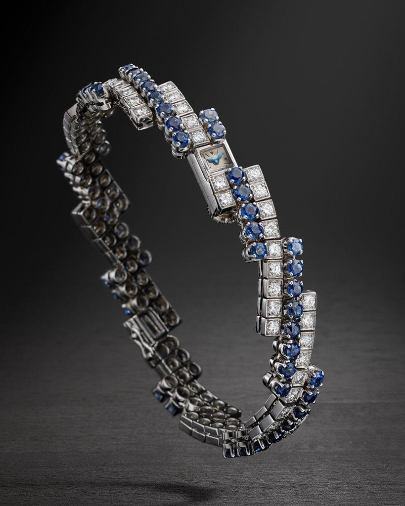 Certaines créations évoquent un raffinement extrême, à l’instar d’une pièce Haute Joaillerie de 1960, en or blanc sertie de diamants et saphirs, dotée du légendaire Calibre 101. Quant à la rare Duoplan Tuile de 1939, elle séduit par l’originalité de son cadran perpendiculaire et son verre bombé, évocation poétique des toits méditerranéens.