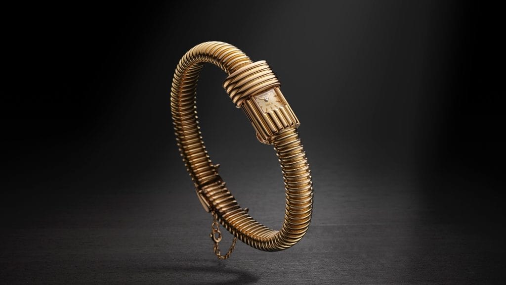 Parmi les trésors réunis : la Duoplan Tubogas en or jaune, créée vers 1950, dont l’esthétique sculpturale évoque le langage avant-gardiste de l’époque. Ou encore la Duoplan Chaîne des années 1940, montée sur un large bracelet en or jaune, à la fois bijou et montre secrète. D’autres pièces illustrent l’adaptation du design aux modes de vie modernes, comme la Duoplan Driver, pensée pour être lue sans quitter le volant des yeux, un hommage au dynamisme des années 1930.