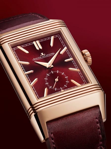À l’occasion du 90e anniversaire de la Reverso en 2021, Jaeger-LeCoultre réinterprète l’un de ses modèles les plus prisés. Lancée en édition limitée avec un cadran bordeaux et un boîtier en or rose, la Reverso Tribute Duoface Fagliano rend hommage à un design d’une longévité exceptionnelle.