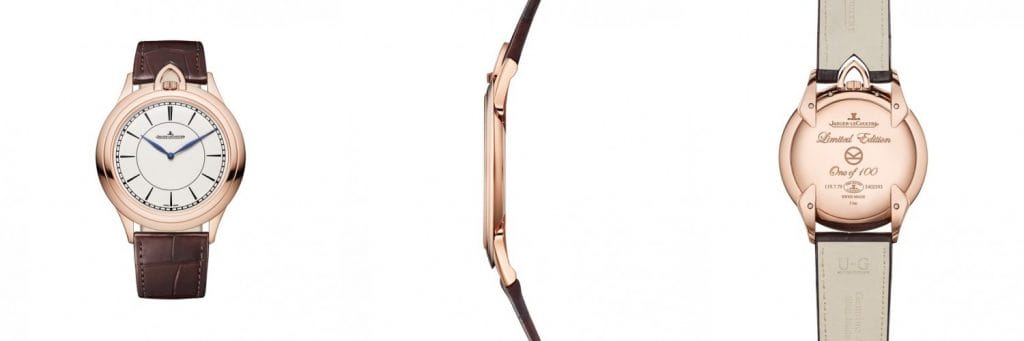 Les montres de poche traditionnelles de Jaeger-LeCoultre ont de toute évidence influencé l’esthétique de cette nouvelle montre : la large lunette s’étend avec délicatesse du verre saphir au bord du boîtier, pour un profil fin rappelant la lame d’un couteau. La couronne de remontoir est quant à elle protégée par un arc triangulaire et placée à 12 heures. Toutefois, ces éléments intemporels et traditionnels sont adaptés dans un design moderne grâce à des détails subtils : les index des heures rehaussent simplement un cadran élégant et épuré, tandis qu’une gravure raffinée vient sublimer la lunette.