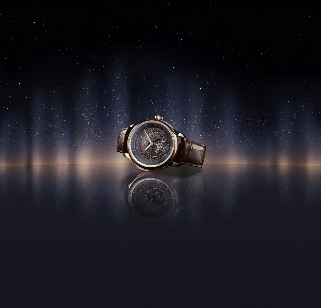 En 2010, la Grande Maison réunissait pour la première fois les innovations techniques de ses répétitions minutes nouvelle génération avec un affichage astronomique sur la Master Grande Tradition Grande Complication d’origine. Ce modèle introduisait également le tourbillon volant orbital intégré au mécanisme pour servir d’organe réglant.