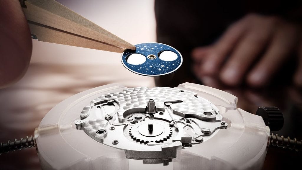Chacune des deux références exprime son identité propre tout en conservant les codes emblématiques de la collection. La Master Ultra Thin Date met en valeur son disque de date blanc intégré dans un guichet rectangulaire contrastant avec la couleur du cadran. La Master Ultra Thin Moon associe quant à elle l’indication des phases de lune et la date dans un même compteur, où une lune argentée se détache sur un ciel bleu étoilé entouré de chiffres noirs imprimés sur la surface cuivrée.