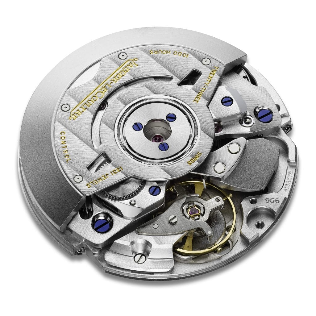 Le calibre Jaeger-LeCoultre 956 est équipé d’un mécanisme de sonnerie à timbre, d’une trotteuse et d’un système de changement de la date instantané. Ce calibre est le descendant direct du premier mouvement de montre automatique à réveil créé par Jaeger-LeCoultre dans les années 1950. Objet d’une amélioration constante, il incarne encore aujourd’hui la précision, la robustesse et la fiabilité par excellence. Il représente un exemple rare de mouvement toujours en production plus de 60 ans après sa création, amélioré et modernisé continuellement.