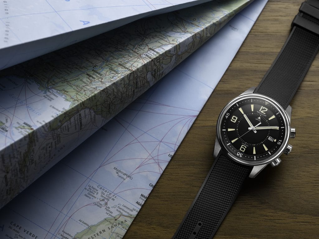 La Jaeger-LeCoultre Polaris Memovox repose sur un nouveau bracelet en caoutchouc doté d’une boucle déployante inédite. Ce modèle est étanche jusqu’à 200 mètres.