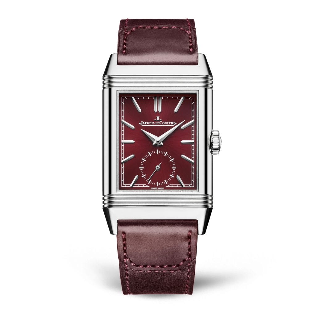 La nouvelle Reverso Tribute Small Seconds affiche un design très pur, que vient rehausser la couleur audacieuse de son cadran et de son bracelet surpiqué assorti, dessiné par l’illustre Casa Fagliano. Liede-vin, bordeaux, carmin, aubergine, peu importe… Le rouge – foncé, profond, envoûtant – est assurément sa couleur. Celle du feu de la passion. De ce feu qui inspire les maîtres-horlogers et artisans de Jaeger-LeCoultre ainsi que les amateurs de beaux objets, dont la plupart aiment collectionner plusieurs modèles de montres Reverso. Sublimée par sa robe chatoyante et satinée, la Reverso Tribute Small Seconds ne fera sans doute pas exception à la règle…