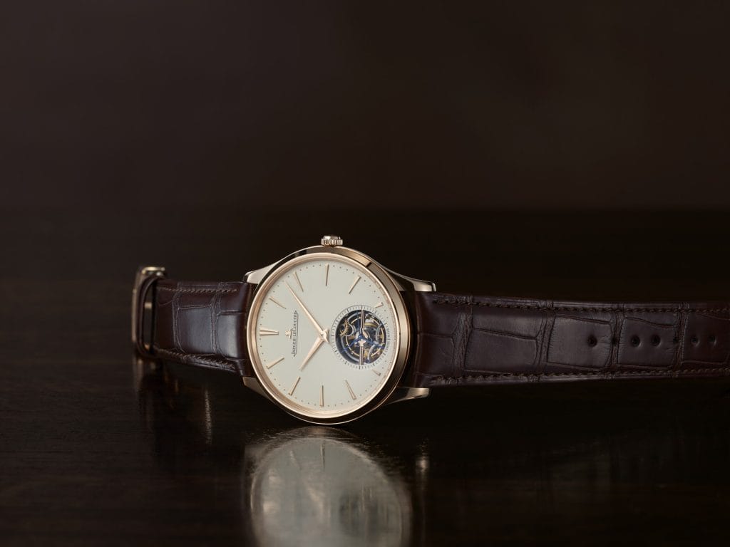 Sur son cadran coquille d’œuf, la montre Master Ultra Thin Tourbillon arbore de nouveaux index dorés agrandis et affinés qui gagnent en prestance et en lisibilité. À 6 heures, ils s’amenuisent et disparaissent complètement pour laisser la place au spectacle du Tourbillon doté d’un nouveau pont en or. À l’envers de la montre, se distingue la nouvelle platine au fini soleillé de son mouvement automatique. Ouvragés dans un souci de sophistication extrême, les détails comme les finitions de la montre prennent une nouvelle dimension et ce, quel que soit l’angle de vue utilisé pour admirer sa face avant ou arrière.