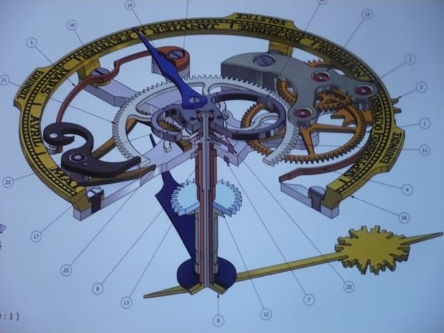 Ces jours-là, les deux aiguilles des minutes se chevauchent grâce une came montée sur une roue qui effectue une rotation par année.
